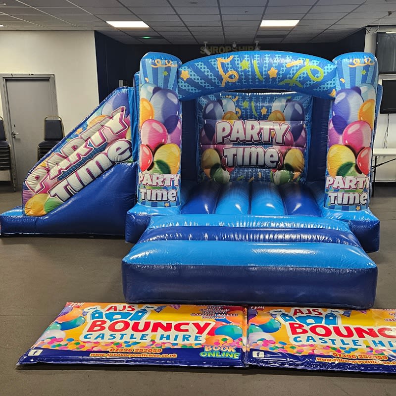 BLUE PARTY BOUNCY CASTLE & SIDE SLIDE