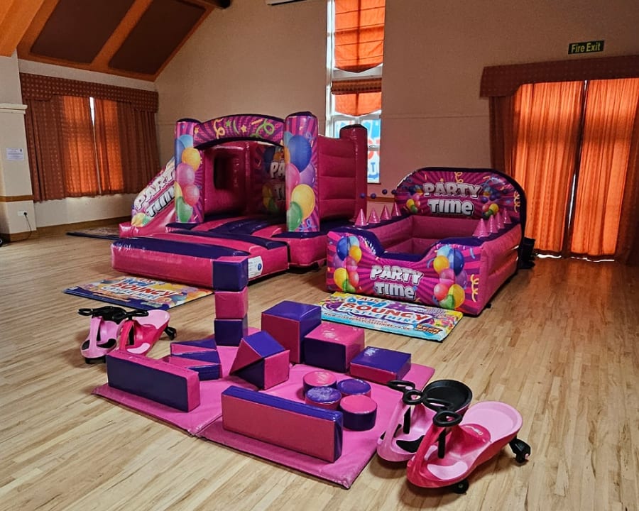Available for hire in Telford, Shropshire, and all surrounding areas, we specialize in premium soft play hire, bouncy castle hire, and much more. Book our Pink Party Castle with Slide & Soft Play Package today for an unforgettable event!