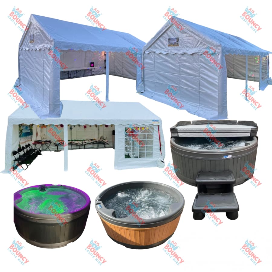 Welcome to AJS Bouncy Castle Hire, where we redefine luxury and relaxation with our exquisite Marquee and Hot Tub Package. We combine the ultimate solid shell hot tub experience with our premium marquee, creating an ambiance of sophistication and comfort for your event.